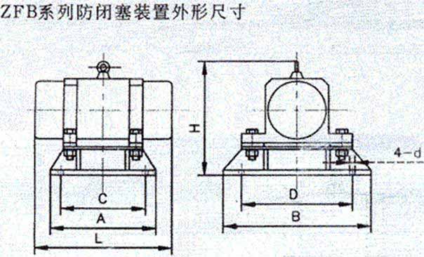 ZFB系列防閉塞裝置由振動電機和底座兩部分組成。由于底座緊固地安裝在料倉壁上,振動電機和底座由螺栓緊密地固定為一體。這樣就構成了單質點定向強迫振動系統。當防閉塞裝置開始工作時,振動電機的高速轉動。由于ZFB系列防閉塞裝置的周期性振動,便產生了對料倉壁的周期性高頻振動。使物料受交變速度和加速度的影響,處于不穩定狀態,同時,使物料與倉壁脫離接觸、消除物料與倉壁的摩擦。進而有效地消除料倉內物料間的相對穩定性,克服了物料的內摩擦力和聚集力,以使物料從料倉口順利排出。